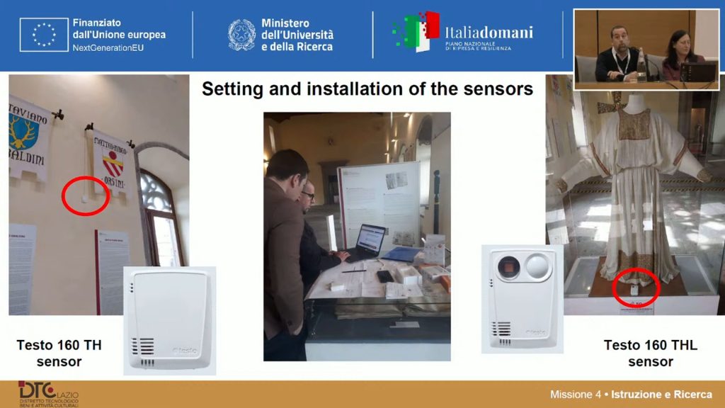 Ad esempio, i sensori installati al Palazzo dei Papi stanno monitorando da un anno esatto (febbraio 2024 – febbraio 2025) la pergamena del XIII secolo e la veste dell’ultimo vescovo di Ferento, San Bonifacio. Nel caso della veste, il sistema ha permesso di rilevare un’irradiazione eccessiva già nei primi giorni di registrazione, consentendo un intervento immediato tramite l’installazione di tendaggi protettivi sulle finestre interessate.